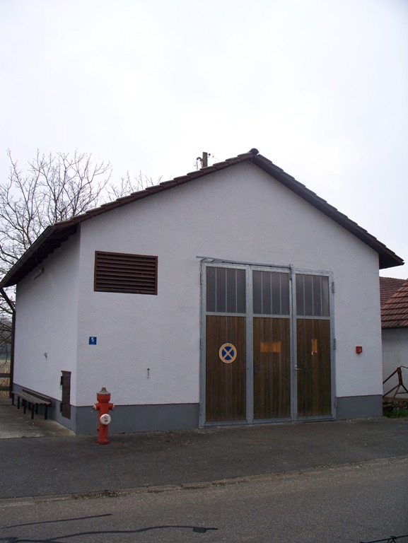 Bau eines Feuerwehrgerätehauses. Die Gemeinde stellte das Material zur Verfügung, sämtliche Arbeiten wurden in Eigenregie von der Dorfbevölkerung ausgeführt. |