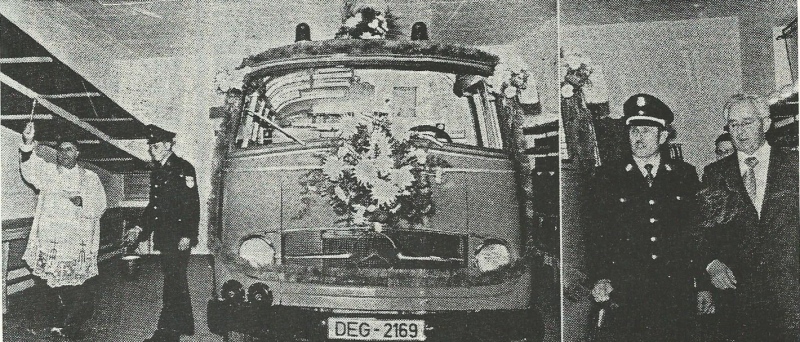 Einweihung eines gebrauchten TSF (Typ Mercedes von der Fa. Bachert), das aus der eigenen Vereinskasse finanziert wurde |
