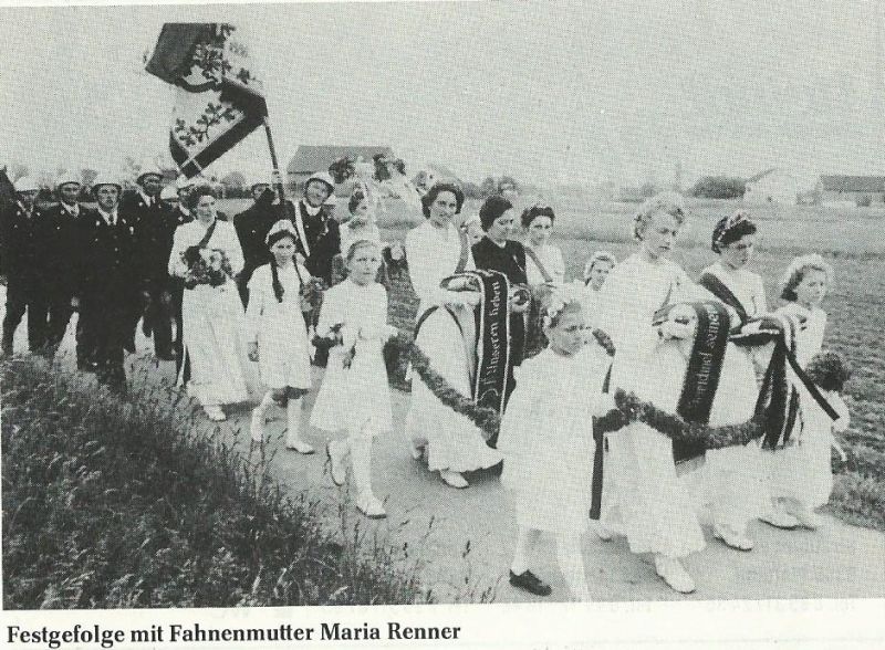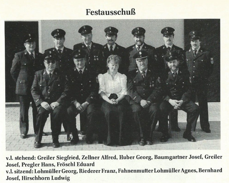 25-jähriges Gründungsfest mit Fahnenweihe. Fahnenmutter war Maria Renner. Die Fahne wurde von der Dorfbevölkerung finanziert. 32 Feuerwehren nahmen an diesem Fest teil, die Weihe der neuen Fahne vollzog Pfarrer Georg Blöchl |